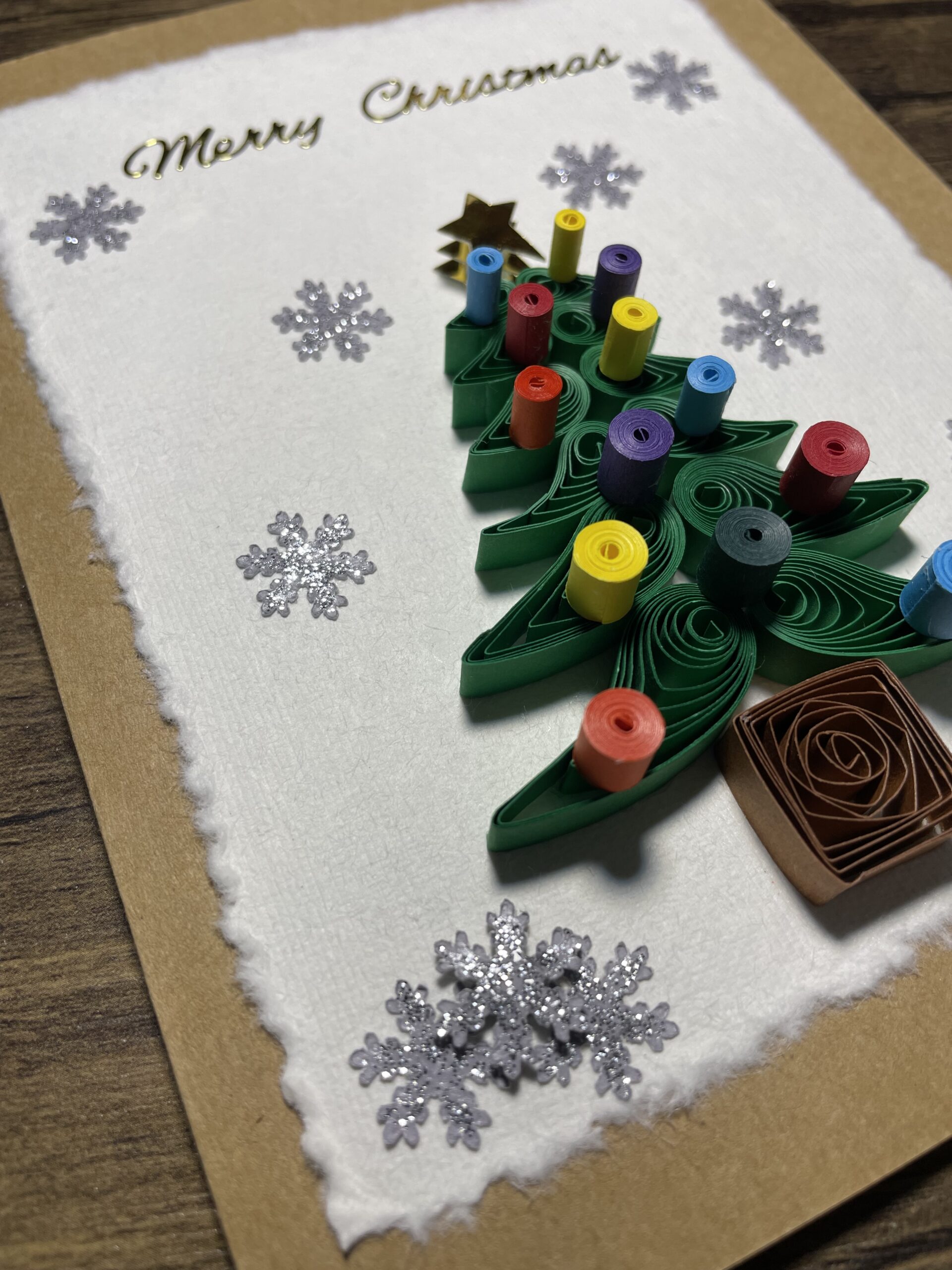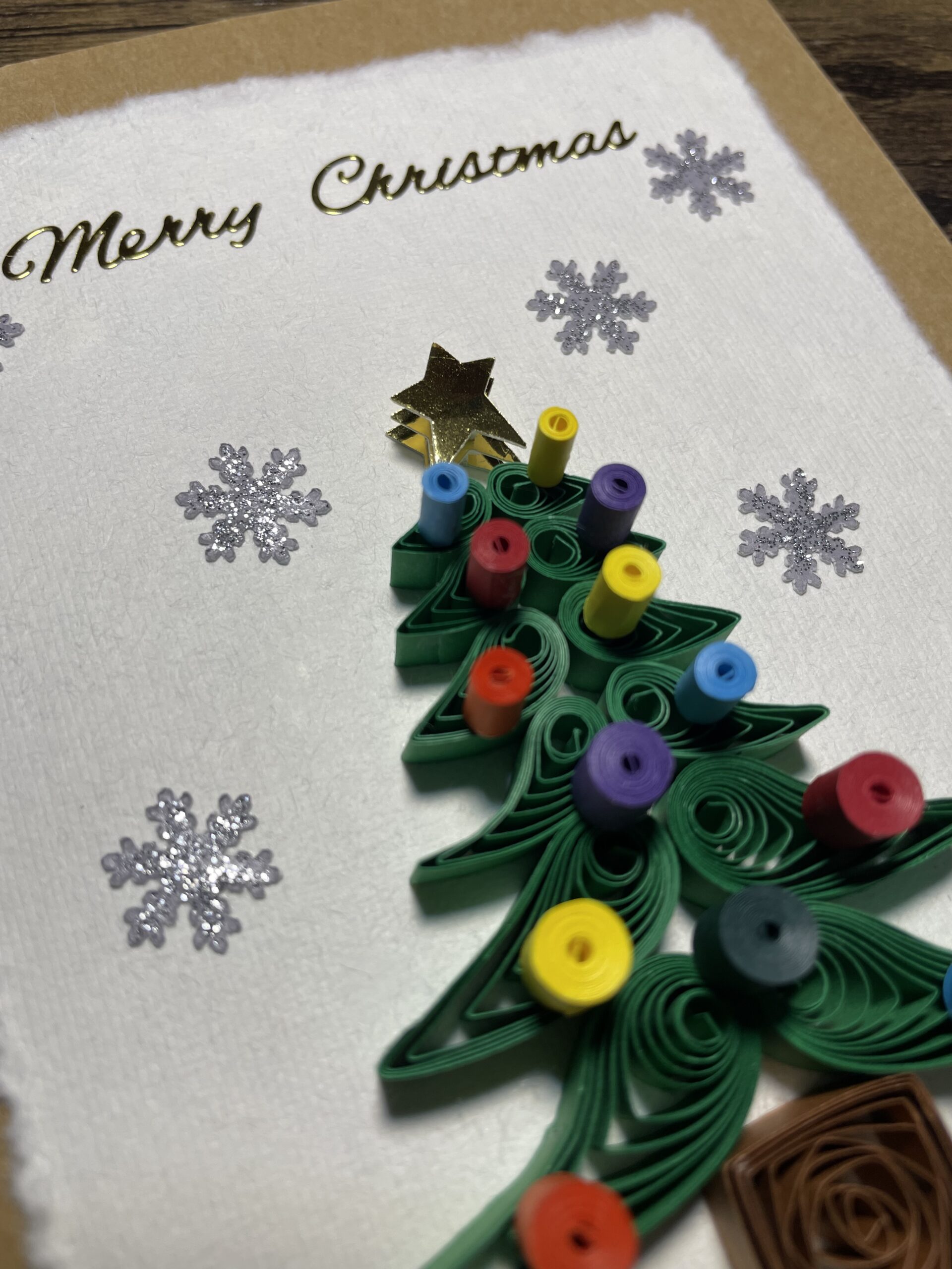I used 7mm quilling strips in the colors of dark green, ocean blue, Christmas red, dark purple, lemon, golden red, light brown, and Christmas green.